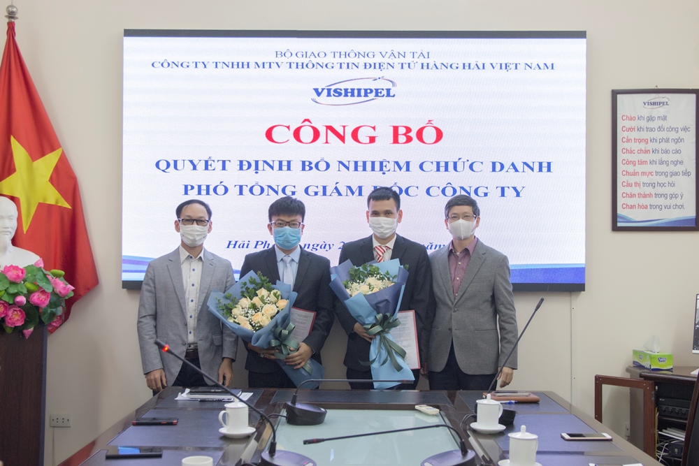 Theo Quyết định bổ nhiệm số 4066/QĐ-VISHIPEL và số 4068/QĐ-VISHIPEL, đồng chí Phạm Anh Sơn và đồng chí Nguyễn Tiến Hoàng sẽ giữ chức vụ Phó Tổng Giám đốc Công ty TNHH MTV Thông tin Điện tử Hàng hải Việt Nam kể từ ngày 21/12/2021.