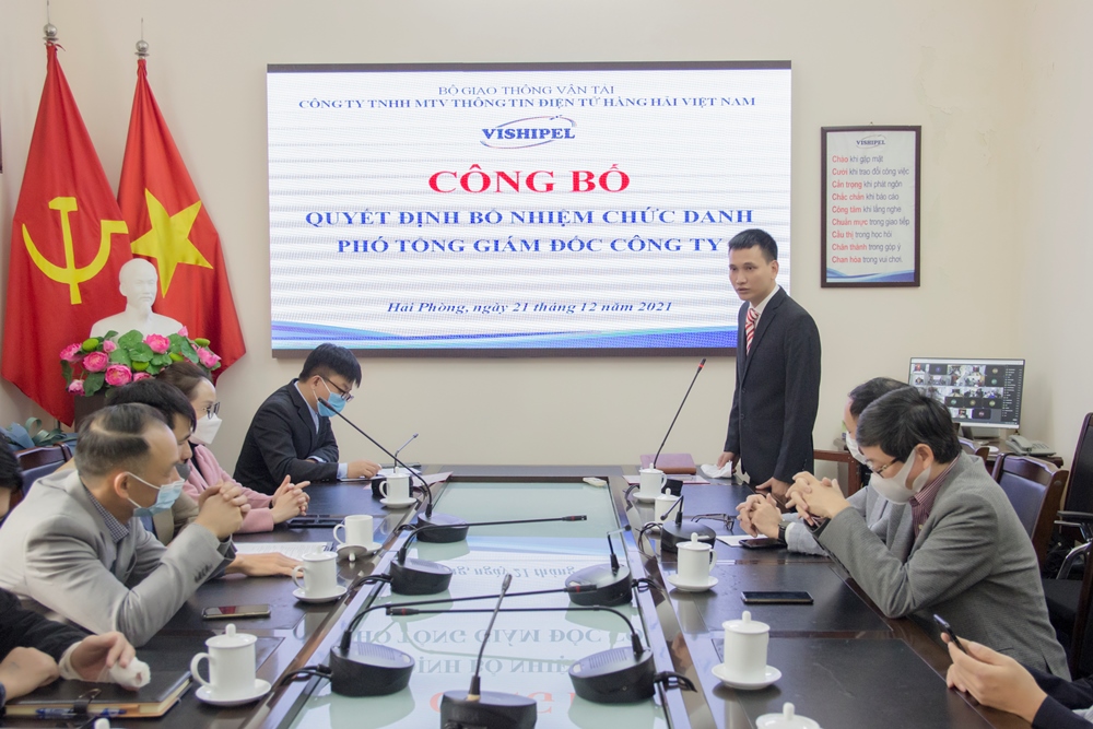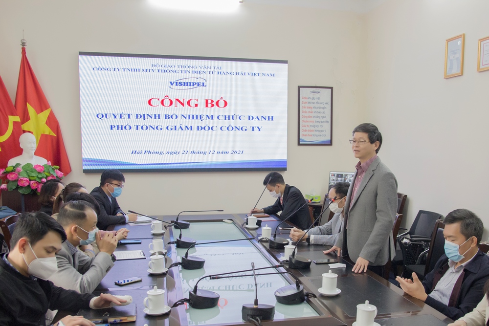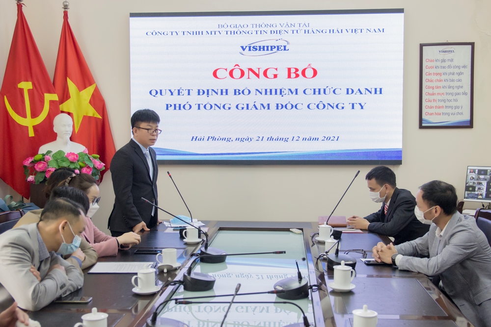 (Vishipel) – Sáng ngày 21/12/2021, tại trụ sở Công ty TNHH MTV Thông tin điện tử hàng hải Việt Nam (Công ty VISHIPEL) đã diễn ra Lễ Công bố Quyết định bổ nhiệm chức danh Phó Tổng Giám đốc cho đồng chí Phạm Anh Sơn và đồng chí Nguyễn Tiến Hoàng.