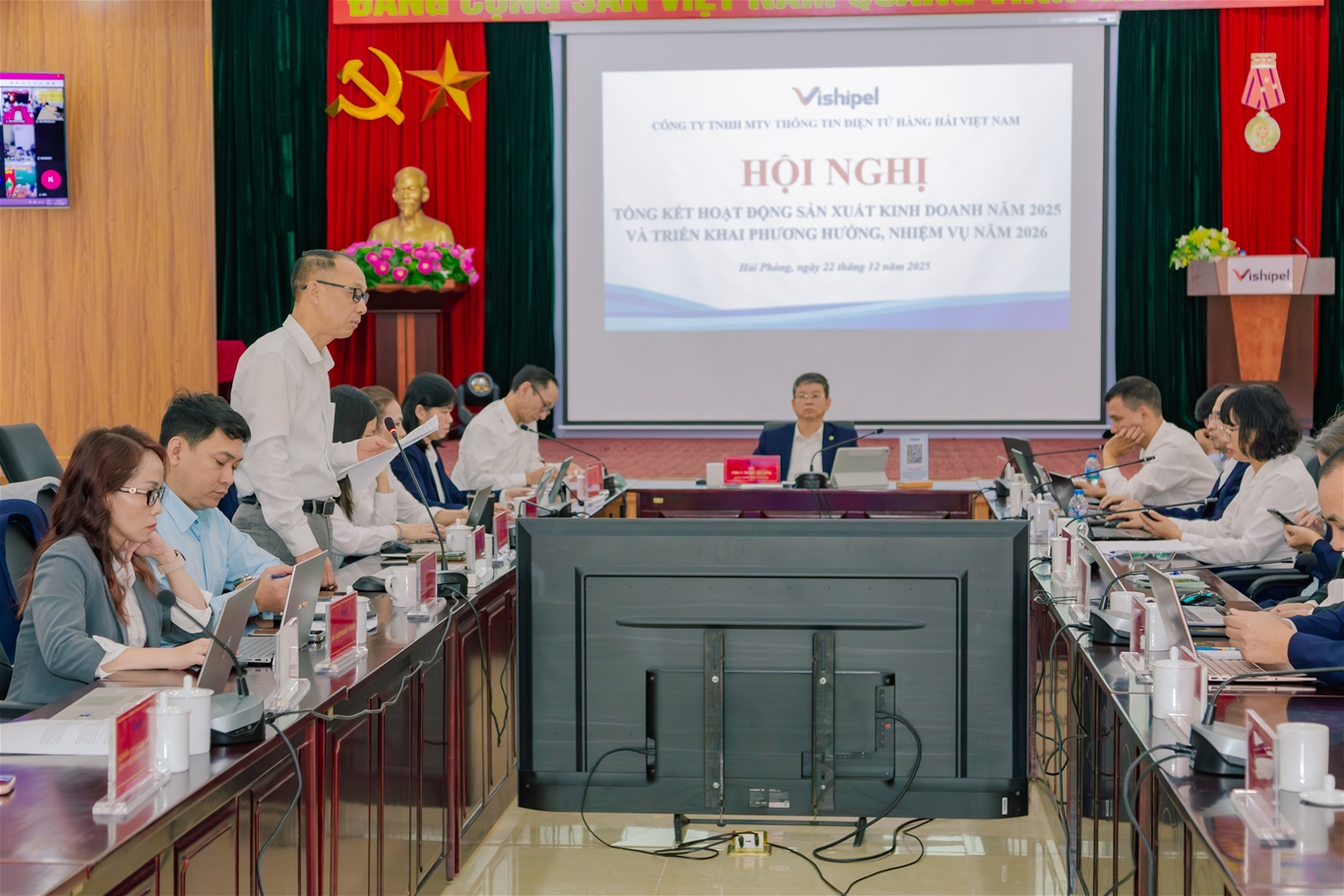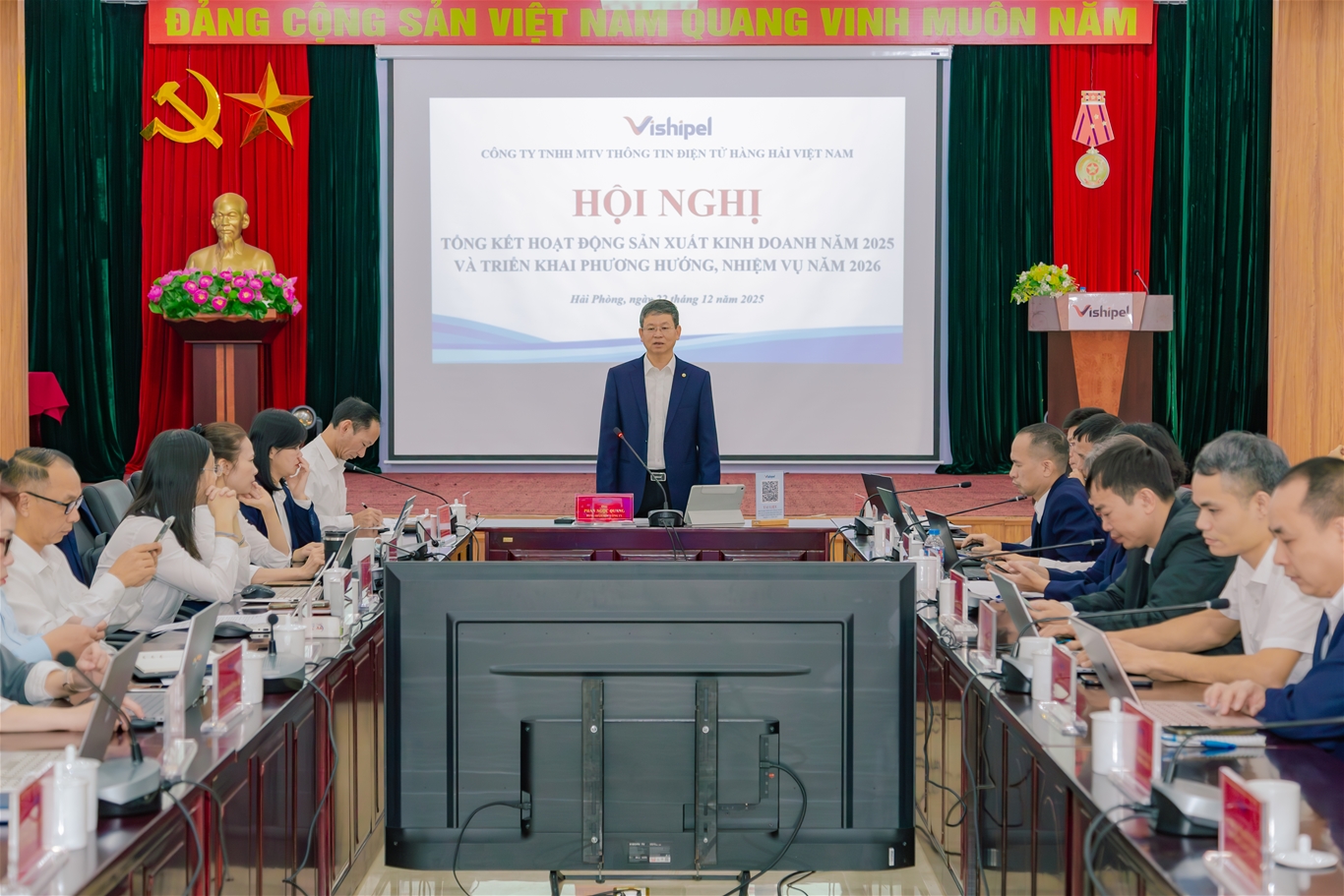 (Vishipel) – Sáng ngày 22/12/2025, Công ty TNHH MTV Thông tin Điện tử Hàng hải Việt Nam (VISHIPEL) đã tổ chức Hội nghị Tổng kết hoạt động sản xuất kinh doanh năm 2025 và đề ra định hướng nhiệm vụ công tác năm 2026.