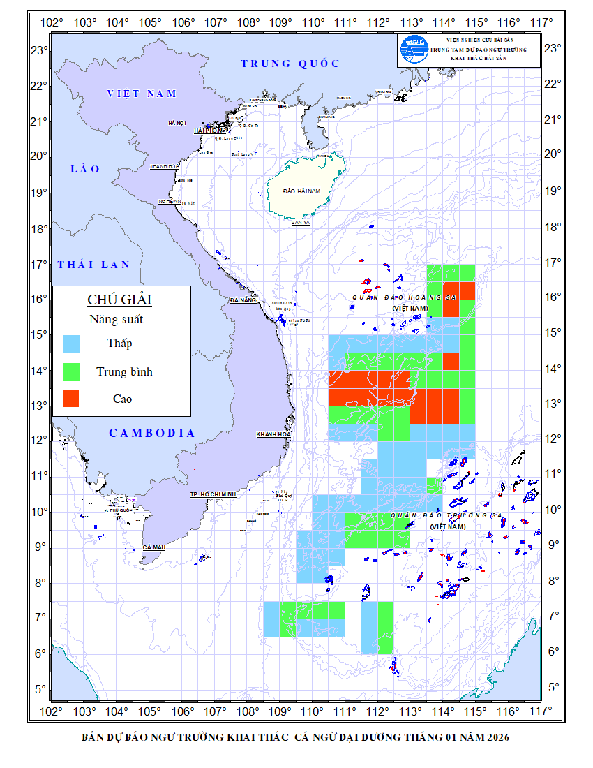 Dự báo ngư trường khai thác cá ngừ đại dương tháng 01 - 2026