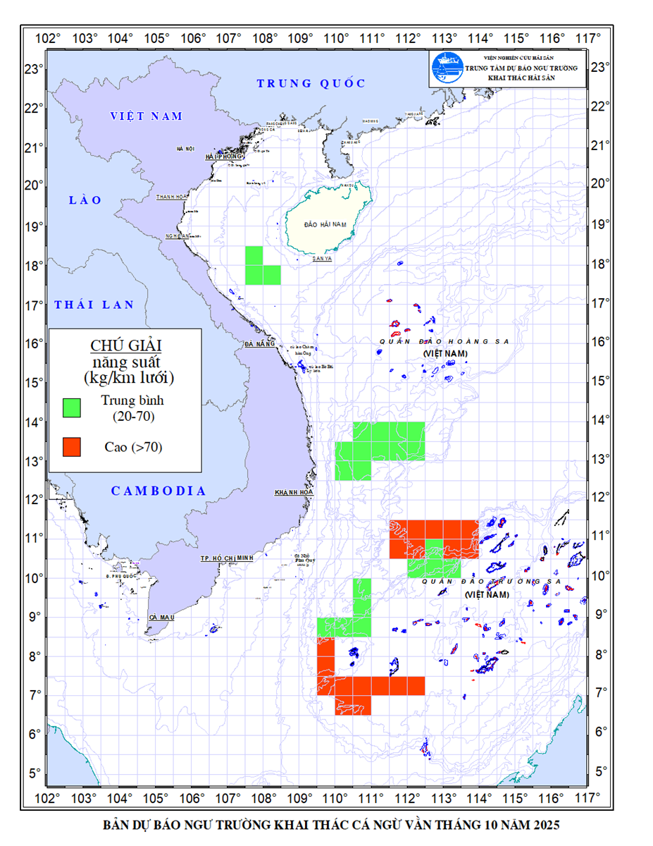 - Khu vực có khả năng khai thác ước đạt trung bình (20 - 70kg/lưới)