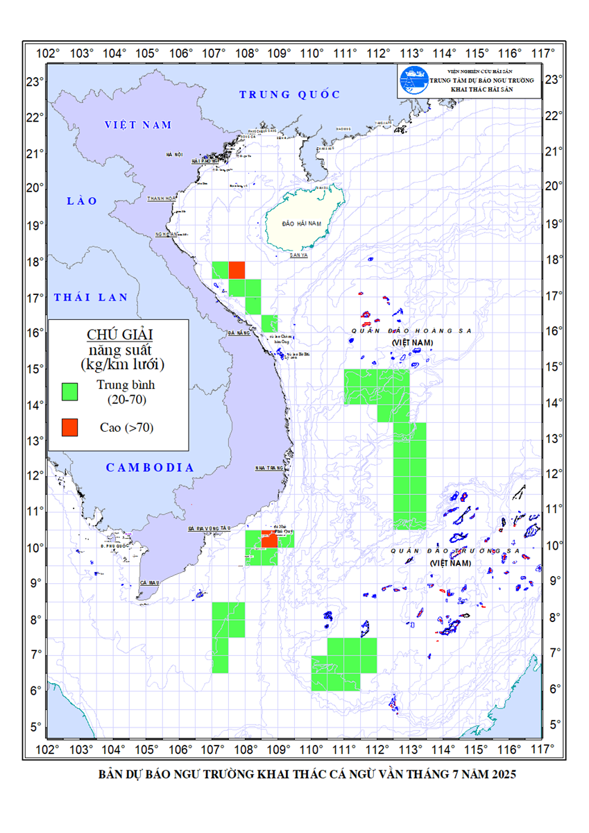- Khu vực có khả năng khai thác ước đạt trung bình (20 - 70kg/lưới)