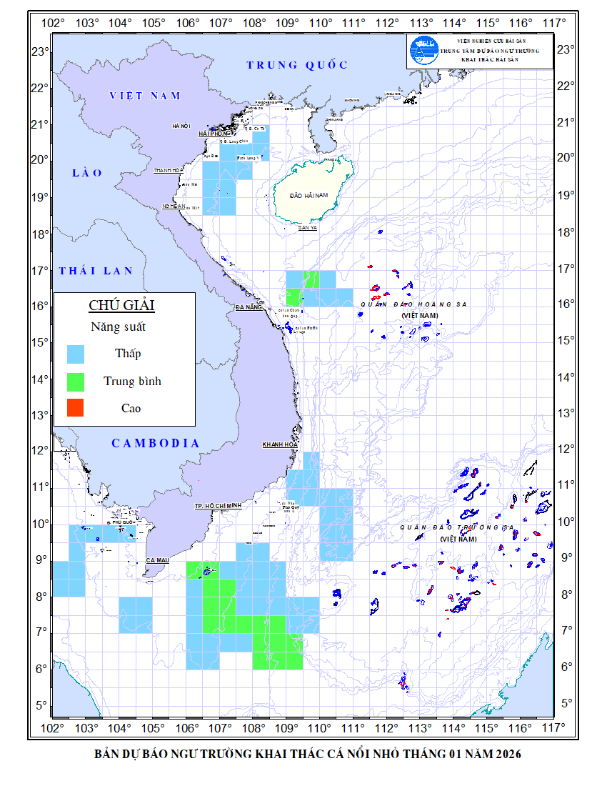 Dự báo ngư trường khai thác cá nổi nhỏ tháng 01 - 2026