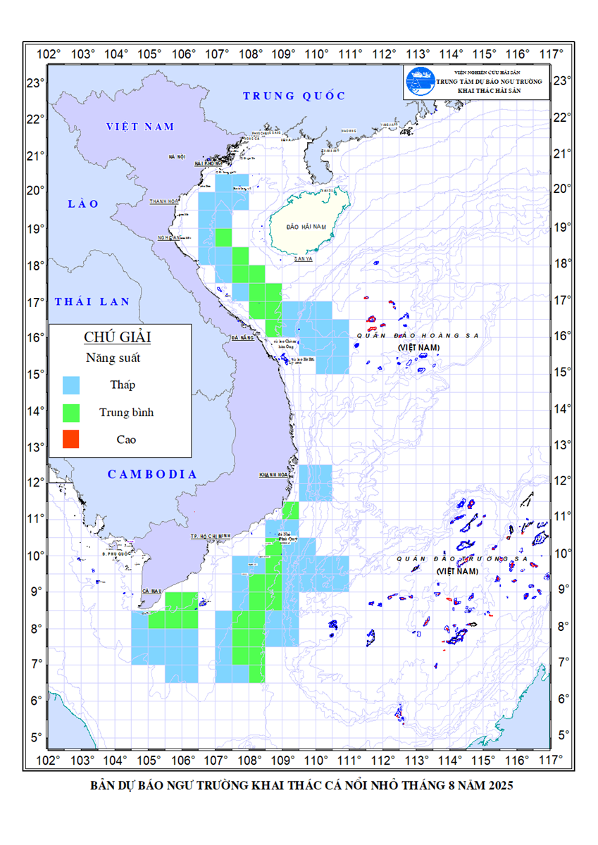 Dự báo ngư trường khai thác cá nổi nhỏ tháng 8 - 2025
