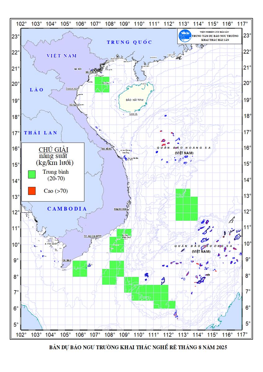 Dự báo ngư trường khai thác nghề Rê tháng 8 - 2025