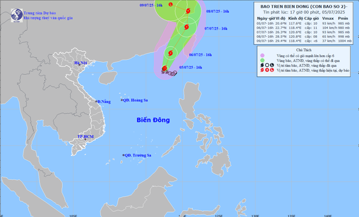 Dự báo thời tiết biển đêm 05/07 ngày 06/07/2025