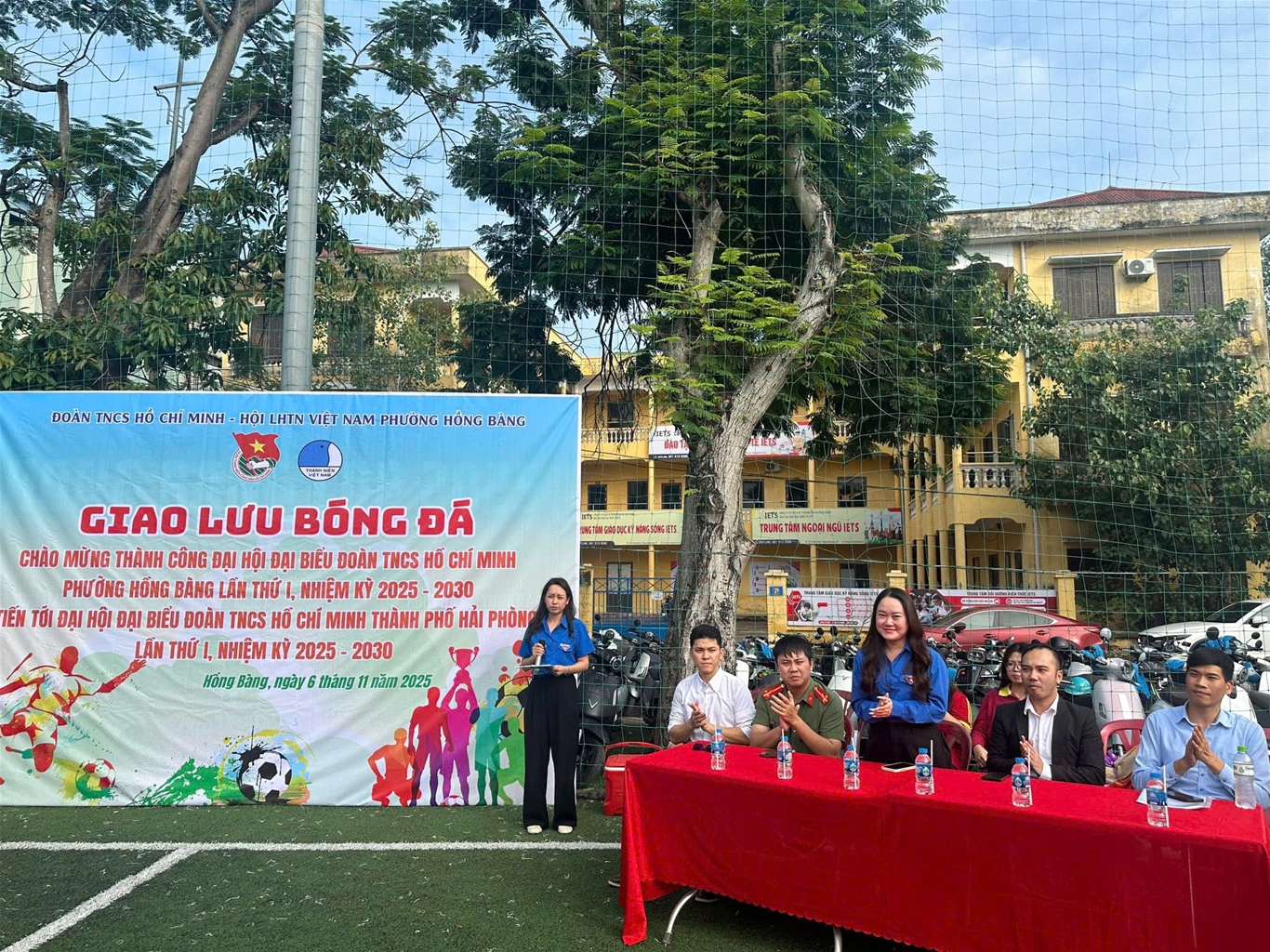 Hòa trong không khí phấn khởi chào mừng thành công Đại hội Đại biểu Đoàn TNCS Hồ Chí Minh phường Hồng Bàng lần thứ I, nhiệm kỳ 2025–2030, tiến tới Đại hội Đại biểu Đoàn TNCS Hồ Chí Minh thành phố Hải Phòng lần thứ I, chiều ngày 06/11, Đoàn phường Hồng Bàng đã tổ chức trận giao hữu bóng đá đầy sôi nổi giữa hai đội: Đoàn Công an phường và Đoàn Công ty TNHH MTV Thông tin Điện tử Hàng hải Việt Nam.