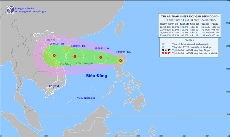Tin áp thấp nhiệt đới gần biển Đông (Tin phát lúc 14h00 ngày 22/08/2025)