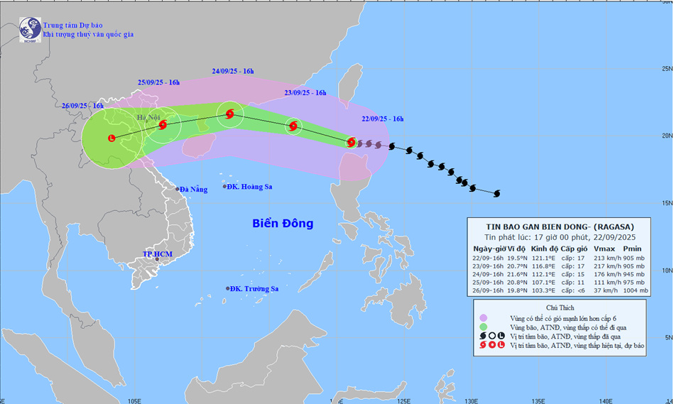 Tin bão gần biển Đông - Siêu bão RAGASA (Tin phát lúc 17h00 ngày 22/09/2025)