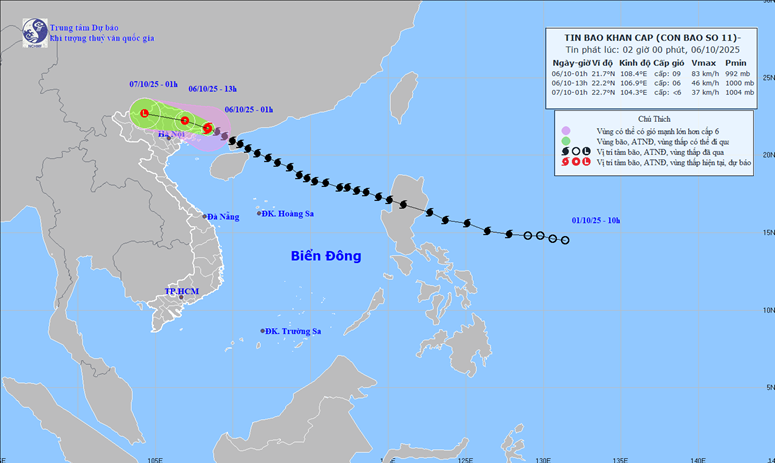 Tin bão khẩn cấp - Cơn bão số 11 (Tin phát lúc 02h00 ngày 06/10/2025)