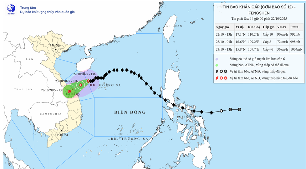 Tin bão khẩn cấp - Cơn bão số 12 (Tin phát lúc 14h00 ngày 22/10/2025)