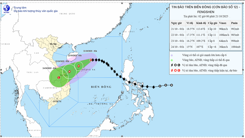 Tin bão trên biển Đông ( Cơn bão số 12 - Tin phát lúc 02h00 ngày 21/10/2025)
