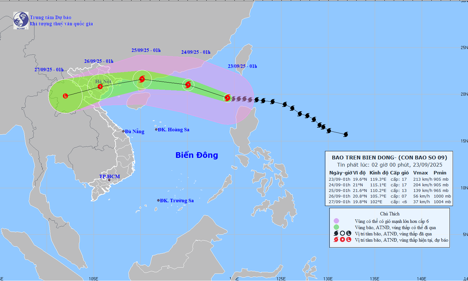 - Thời điểm dự báo: 01 giờ ngày 25/9: