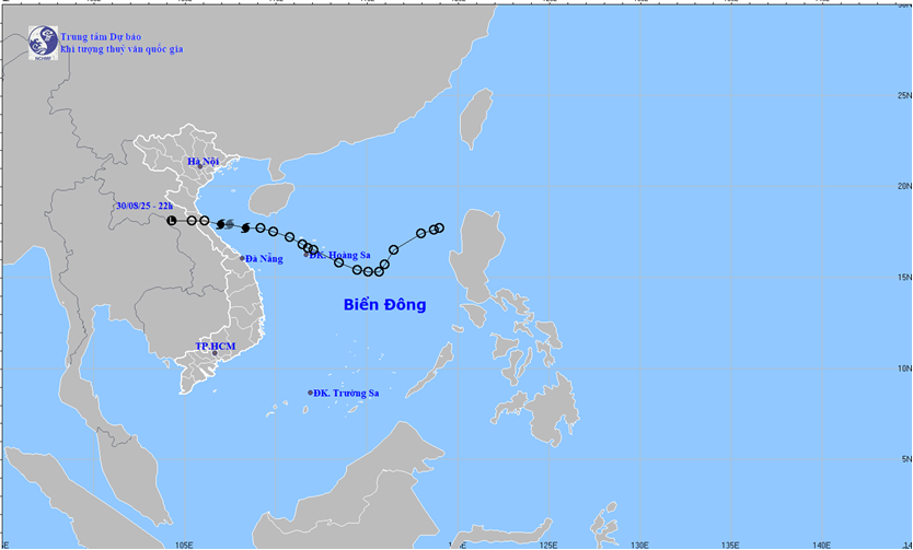 Tối nay (30/8), áp thấp nhiệt đới đã suy yếu thành một vùng áp thấp trên khu vực Trung Lào.